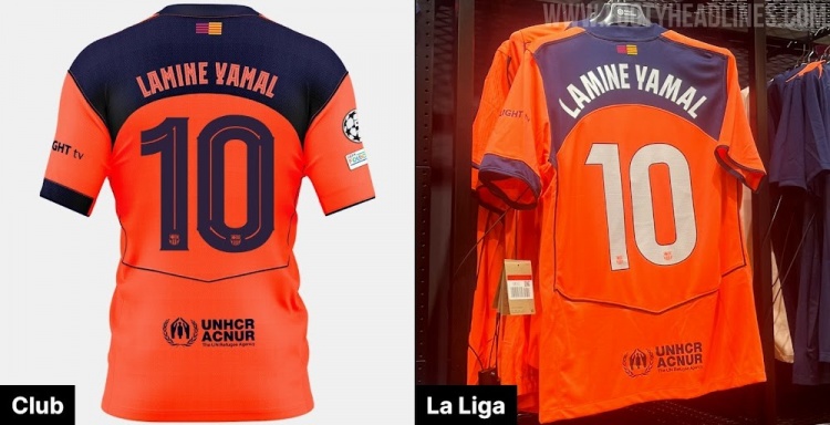 9月19日讯 著名足球装备网站FootyHeadlines报道,巴萨第三球衣身后印字因为西甲规定只能使用白色字体,效果看起来差多了。