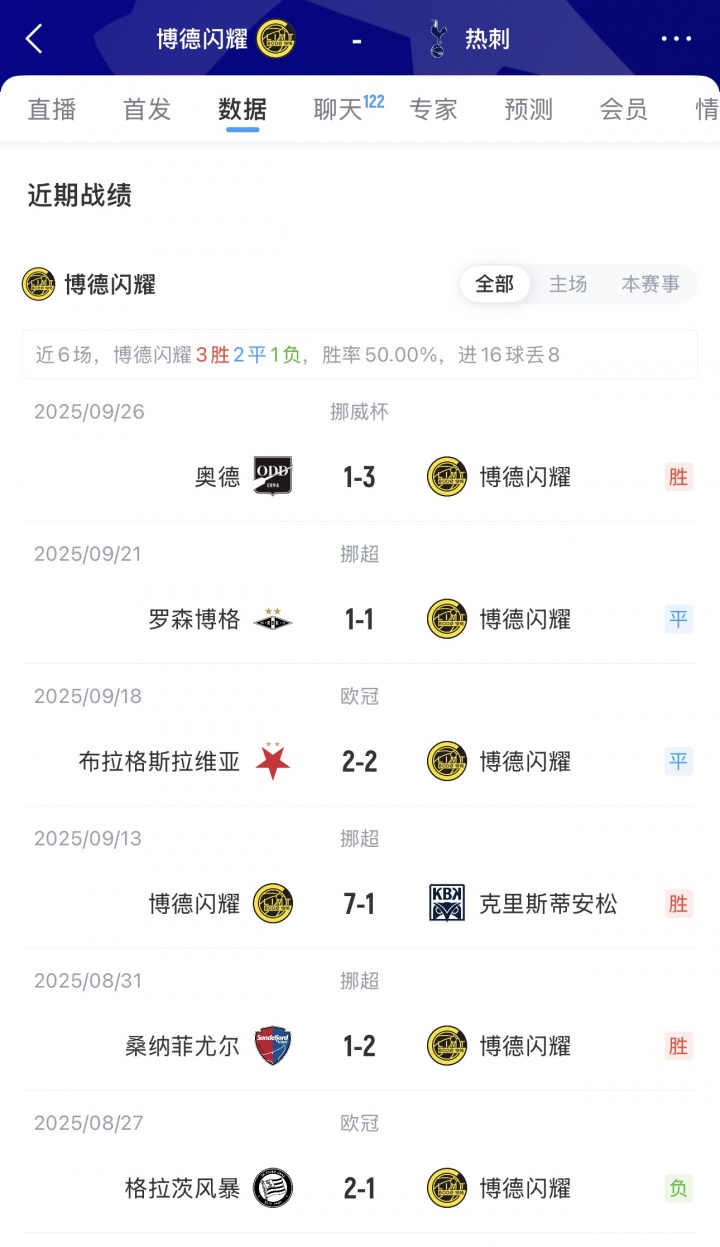 欧冠首轮,热刺主场1-0力克比利亚雷亚尔;博德闪耀客场2-2战平布拉格斯拉维亚!热刺和博德闪耀交手过两次,热刺均取胜!